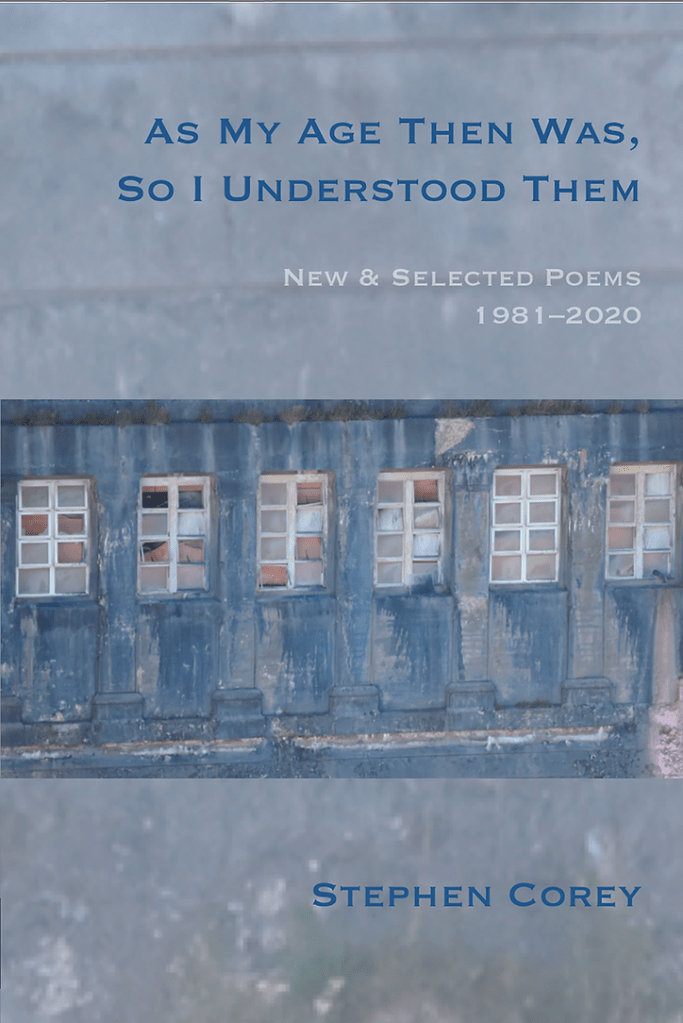 In his latest collection, As My Age Then Was, So I Understand Them, Corey supplements poems gleaned from some of his previous publications with a set of new, uncollected pieces to create a 40-year retrospective of the artist’s work. However, this collection is more than just a collection of greatest hits, more cohesive than a “Portable Corey.” By reaching back to different time periods in his life, Corey reveals to the reader what was important to him at particular points in his life. The poems are arranged mostly in ascending chronological order with the exception that the newer poems appear first. And although it is interesting to compare the progression of his craftsmanship through the years, it is equally impressive to note that these poems, in their entirety, just seem to belong together as one cohesive compendium. The publication dates serve more as a key to background and prospective rather than a progression to mastery. Yes, there are differences between the early and later works, but the quality is there from the beginning and does not ebb.